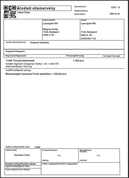 Az átvételi elismervényeket a program a többi szállítólevél példánnyal együtt nyomtatja, azt a szállítást végző kolléga egyben kapja meg. Neki csak arra kell figyelnie, hogy a megrendelő példányán túl ezekből is hagyjon a címen egy példányt.