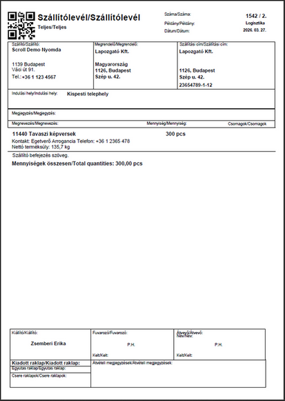 A ScrollMAX rendszer különböző nyelvű és méretű szállítóleveleket tud létrehozni: